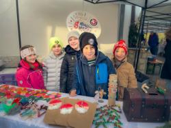 Ihre Werke verkaufen die Kinder an ihrem natürlich selbst betreuten Stand. Danach