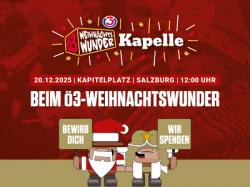 Das Woodstock der Blasmusik unterstützt das Ö3-Weihnachtswunder 2025 in Salzburg - und zwar mit einer eigenen Kapelle! Die Ö3-Weihnachtswunder-Kapelle! Diese wird am 20. Dezember um 12.00 Uhr am Kapitelplatz in Salzburg aufspielen und ab sofort sind Musiker:innen gesucht, die dabei sein wollen. Für jede Bewerbung spendet das Woodstock der Blasmusik €10,- an Licht ins Dunkel!